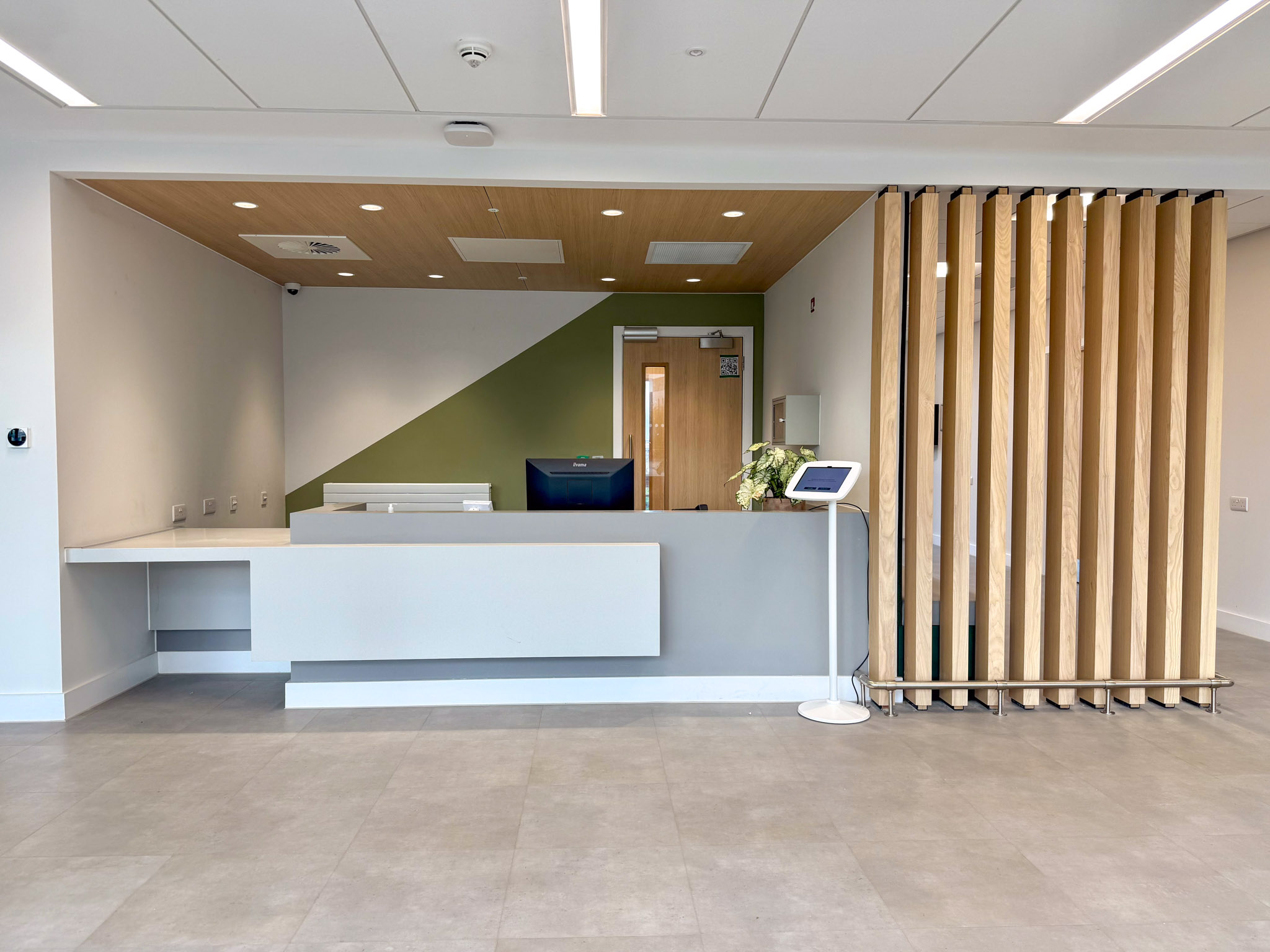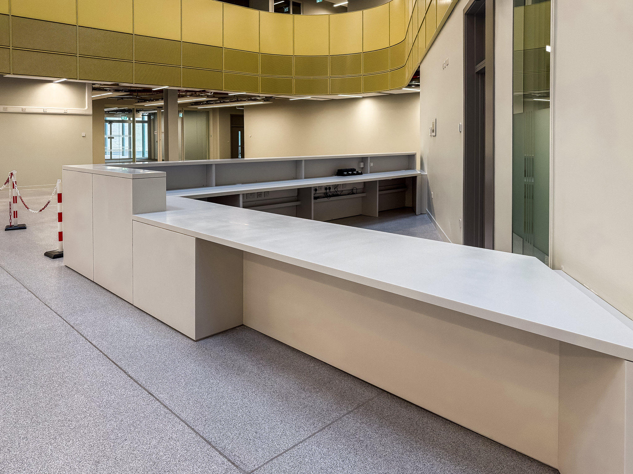 This year, we also applied our expertise to several education sector projects around Edinburgh. One notable project was the Dunfermline City Campus, where we supplied fixed furniture. The new building has been shortlisted for Net Zero Development of the Year at the Scottish Property Awards. For this Fife College facility, we crafted a nurse station, health & wellbeing desk, reception desk, training bars, wall panels, and an LRC desk.