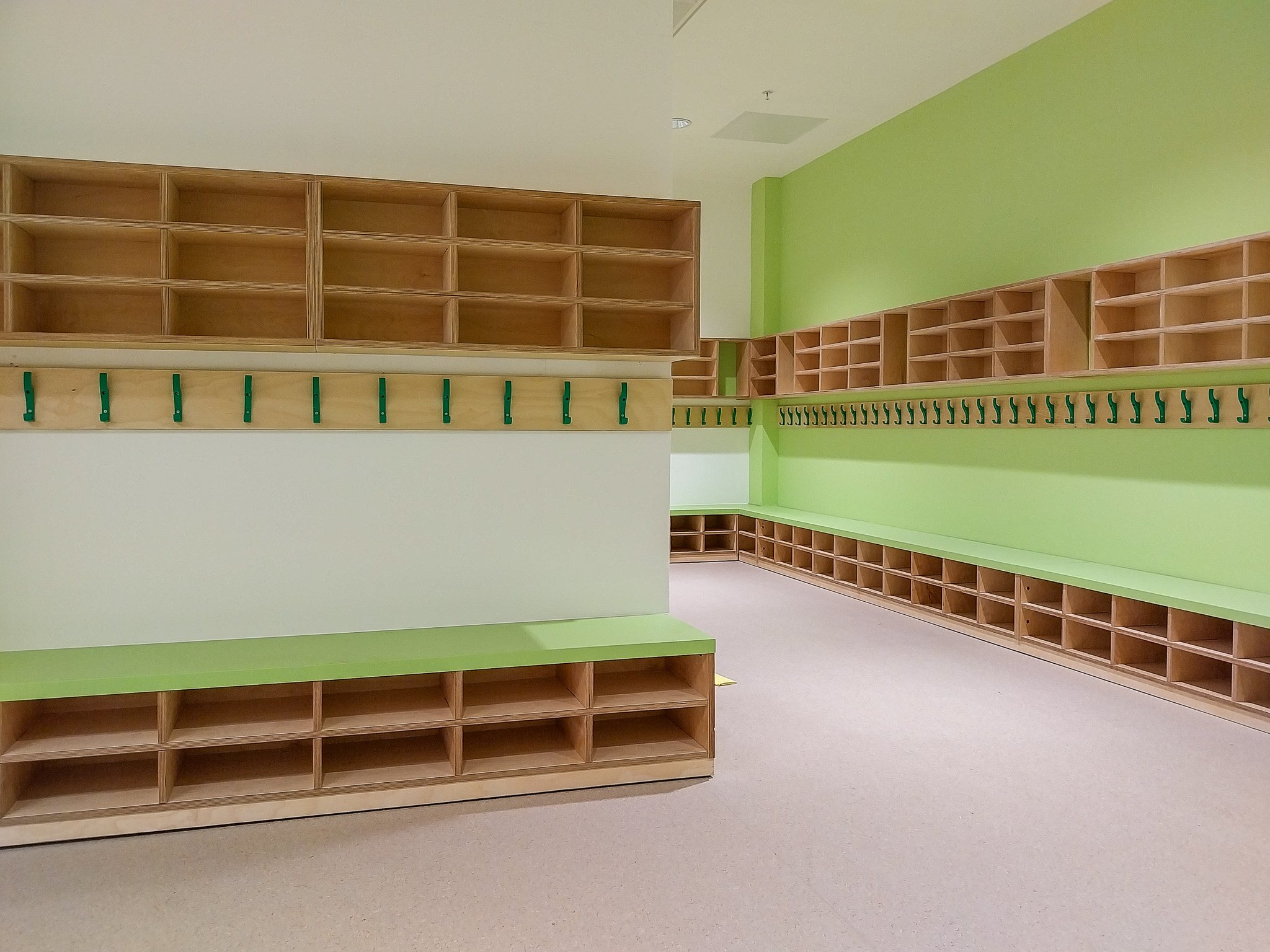 Our responsibilities included manufacturing and installing various bespoke joinery interior features including decorative wall features and panels, a unique stairway integrated with bench and theatre seating, which also provided a play space underneath.  We crafted and installed a café surround, custom storage solutions for cloakrooms, a play area, and trim for windows and doors.